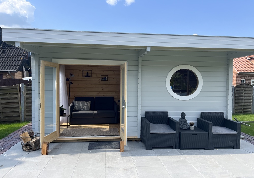 Die Kombination von Funktionalität und einem modernen Erscheinungsbild – so lässt sich diese 70 mm Sauna mit Doppeltür auf den Punkt bringen. Alleine ihre Größe und ihr Design machen sie zu einem echten Blickfang in Ihrem Garten.